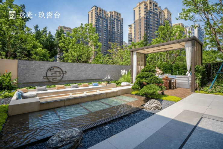 佛山作为岭南文化发源地,千年文脉沉淀,岭南四大名园(梁园、可园、余荫山房、清晖园)更是中式园林的经典代表。龙光・玖誉台的设计团队深入研究岭南造园精髓,以 “梁园” 为蓝本,将传统岭南园林的 “平庭、山庭、水庭、石庭” 四大景观组团,与现代居住需求完美融合,打造约 2.3 万㎡新中式景观园林,复刻梁园 “十二石斋、群星草堂、汾江草庐、寒香馆” 的造景意境,让业主足不出户,便能感受岭南名园的雅致与韵味。
