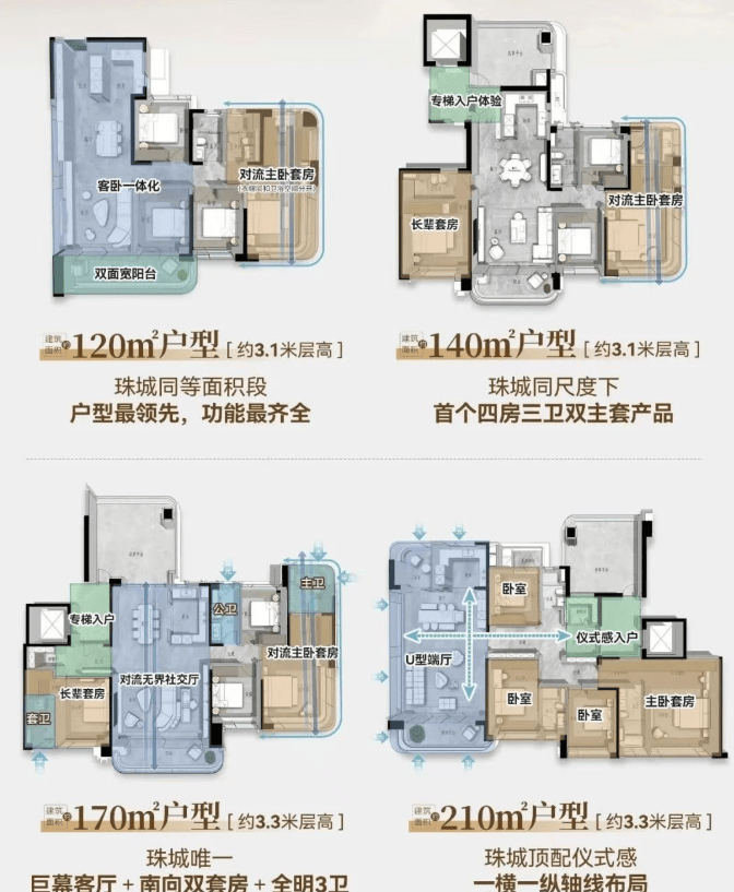 保利天曜提供多种户型选择,产品面积段从约90平方米至220平方米不等,主力户型集中在120-210平方米的四房户型。特别的是,项目采用了“六恒系统”,通过科技手段保障居住环境的舒适度。