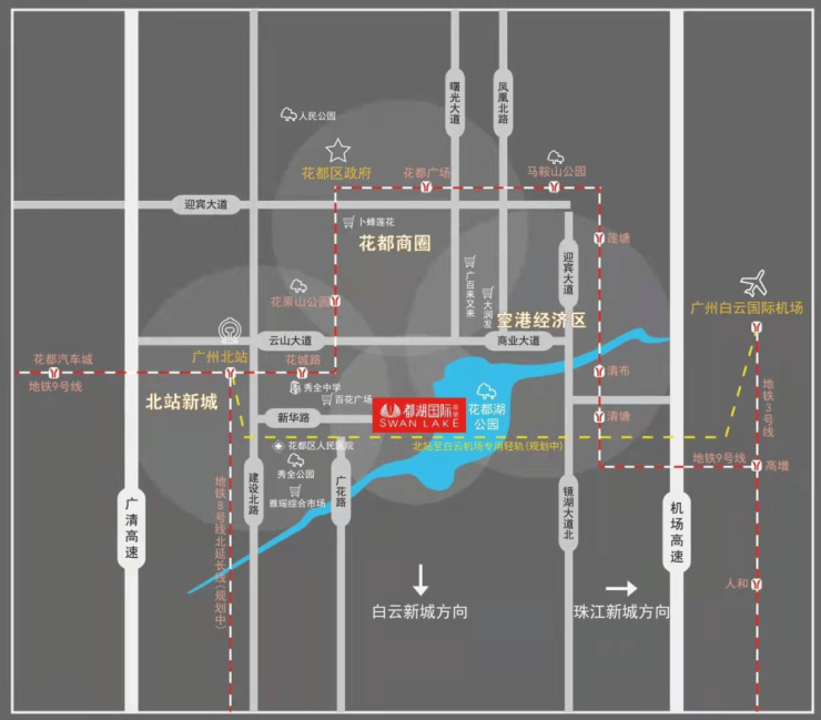 摊开地图,不难发现,都湖国际处于花都滨水新城板块。这里坐拥北站商务区、花都CBD和空港商务区“黄金三角”,有着无可比拟的区位优势。