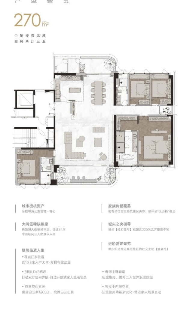 品牌设备:配备国内外一线品牌的户式中央空调、新风系统、厨房电器、卫浴洁具。