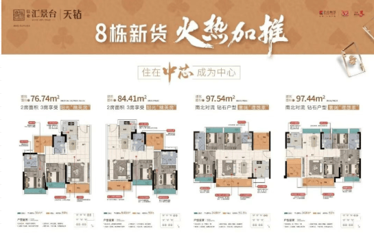 提供建面约76-132平方米的多样化户型,包括3-4房,满足不同家庭需求。