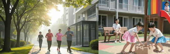 全龄社区设计,配备丰富的休闲娱乐设施,如泳池、健康跑道等。