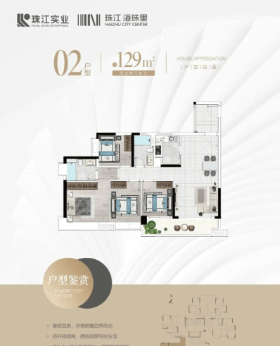 珠江・海珠里提供建面约 75 - 129㎡的二至四房多种户型选择,面积段丰富,能满足不同家庭结构的需求。户型设计注重居住舒适度与实用性,例如 75㎡的大两房采用经典竖厅设计,LDK 一体,实现了空间的高效利用,动静分离保障了生活的私密性,双阳台设计则增加了采光与通风,让居住空间更加明亮舒适。98㎡户型适合三代同堂居住,主卧带独立卫生间,为家庭成员提供了更多的生活便利与私人空间。