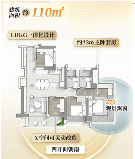 在售一二期涵盖约 110 - 300 平不同面积段户型,均为四房设计,多开间朝南,满足刚改、改善等不同需求。如约 170㎡户型,南北通透对流,四开间朝南;215㎡大平层,3 梯 3 户,带超大入户前室和南向大景观阳台、主卧 270° 观景飘窗;300㎡户型,三梯两户,双套房设计,可观长隆乐园景观。