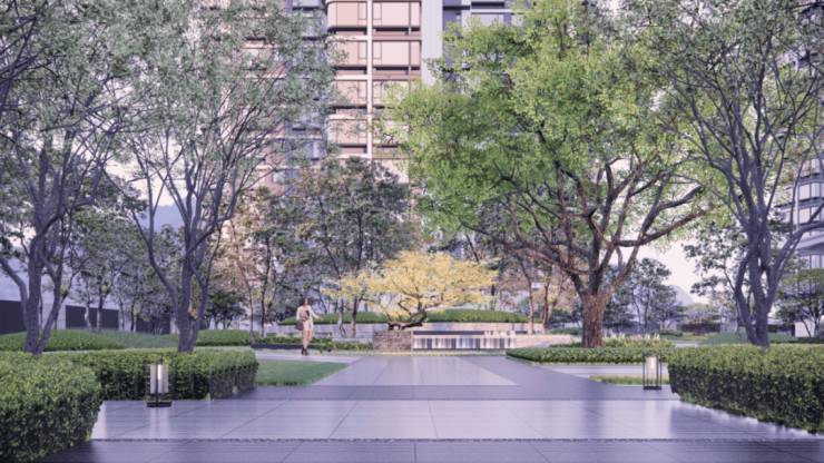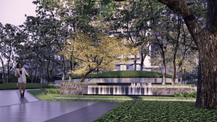 天河麓誉府在规划之初就极为讲究,整体抬高近10米,外部特别打造长约200米的岭南青绿城市广场,与商业街融合。社区入口配置宽约60米、高约10米的气派府门,搭配酒店级环岛式落客区,约2000㎡“四水归堂”格局的下沉庭院,10米高曦山峡谷拾阶步道,营造归家的尊贵感。