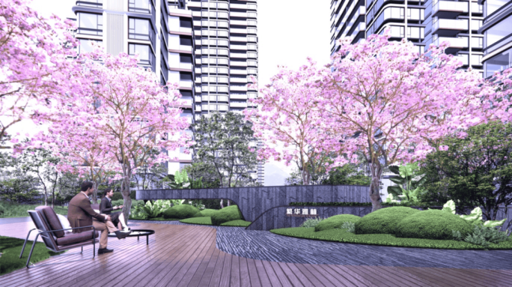小区入口处借助地势,打造独特峡谷风貌景观带,同时小区园林树种配置也非常丰富,有紫荆花、铁冬青、凤凰木等等,每个季节都有树种开花,一年四季更迭都会有不同的视觉享受。