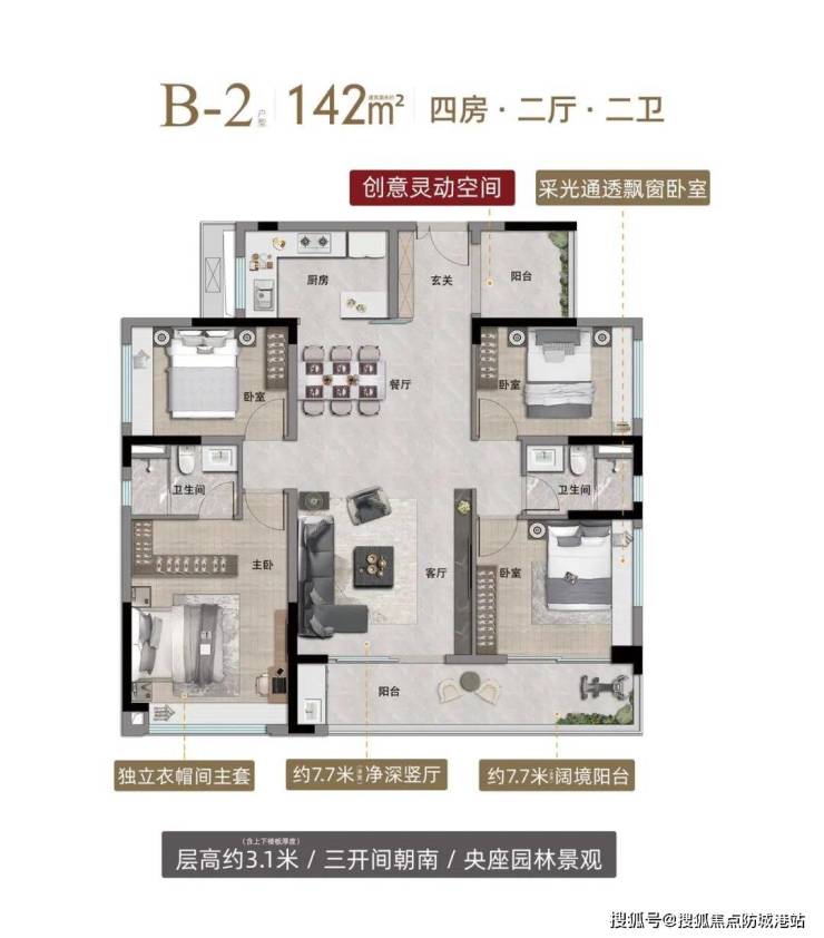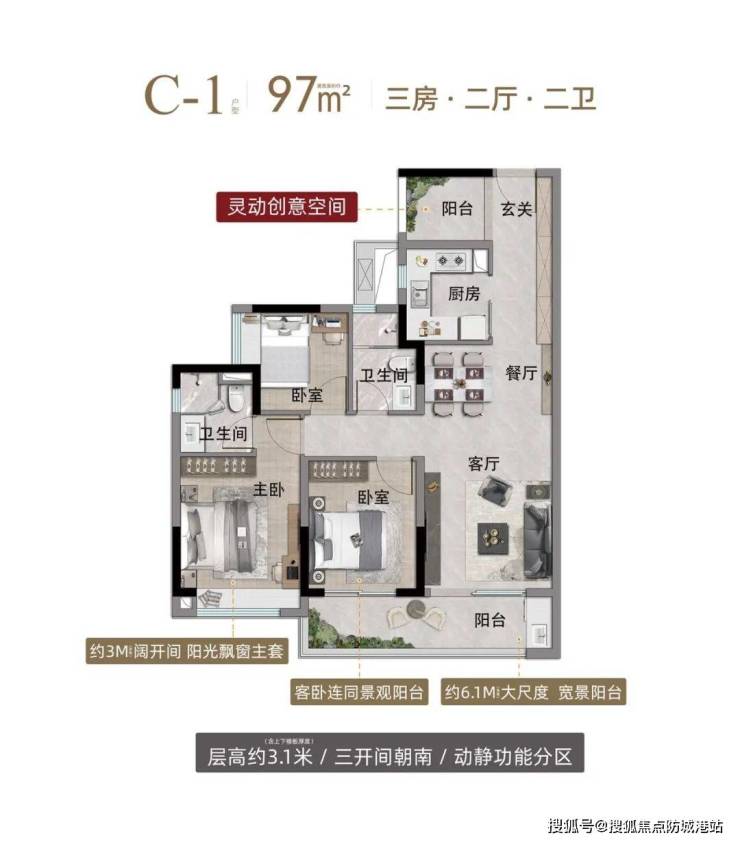 阳台宽度:部分户型阳台宽度达9.4米,南北通透,采光极佳。