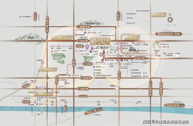 中铁建花语天宸坐落于广州第三发展中轴线“科技创新轴”上,紧邻天河智慧城和黄埔科学城两大核心区域。天河智慧城被誉为广州的“最强大脑”,已吸引2500家企业入驻,包括网易总部、酷狗等知名企业;黄埔科学城则是广深科技创新走廊的重要组成部分,拥有万亿级产业集群,科技创新能力稳居全国经开区前列。