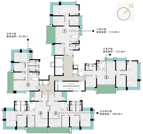 项目总占地约9万平方米,总建筑面积约16万平方米,由10栋住宅组成,户型涵盖87-126㎡三至四房,全部为全南向设计,使用率高达105%以上。首开北区2栋住宅采用2梯5户布局,部分户型为独门独户。小户型87㎡设计兼顾功能性与舒适性,阳台宽敞,户内每寸空间充分利用;108㎡四房户型提供灵活布局与储物空间,主卧配270°景观飘窗;113㎡四房改善型户型更强调公共空间与居住仪式感。整体户型设计兼顾日常生活的便利性与家庭互动需求。