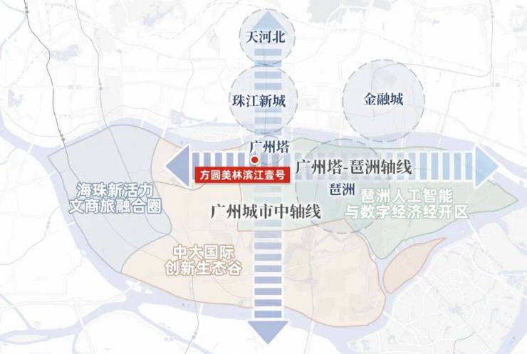 在我看来,和许多“蹭”中轴的项目不同,方圆美林滨江壹号乃是妥妥的中轴C位,而且还在珠江新城-广州塔、广州塔-琶洲两大轴线的交汇处,出生已经躺赢。