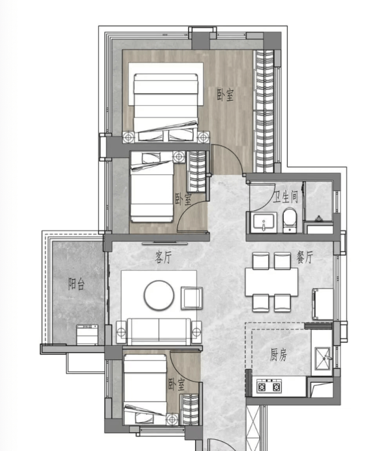 ✅ A:得益于2024年广州新规(阳台≤20%不计容),项目通过科学布局实现69㎡做三房且得房率超100%,实测使用面积约72㎡,远超同面积段竞品。