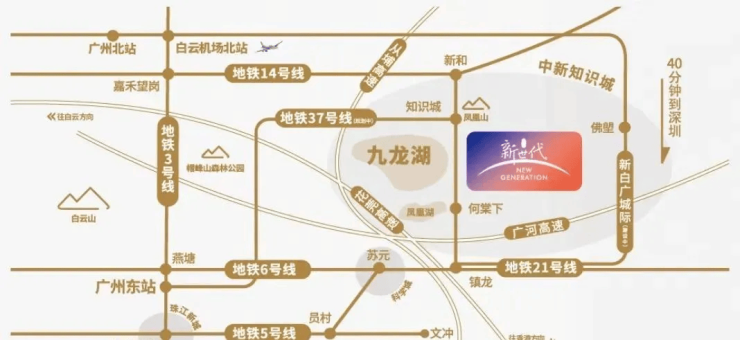 项目距离地铁14号线支线知识城站约800米,步行可达,真正意义上的地铁盘。同时,北侧临近新白广城际佛塱站,未来可快速直达东莞、深圳,并在新塘站无缝换乘进入广州东站。通过地铁快线,7站即可抵达天河核心区,4站接驳21号线,通勤效率极高,轻松链接广州主城与大湾区核心城市。