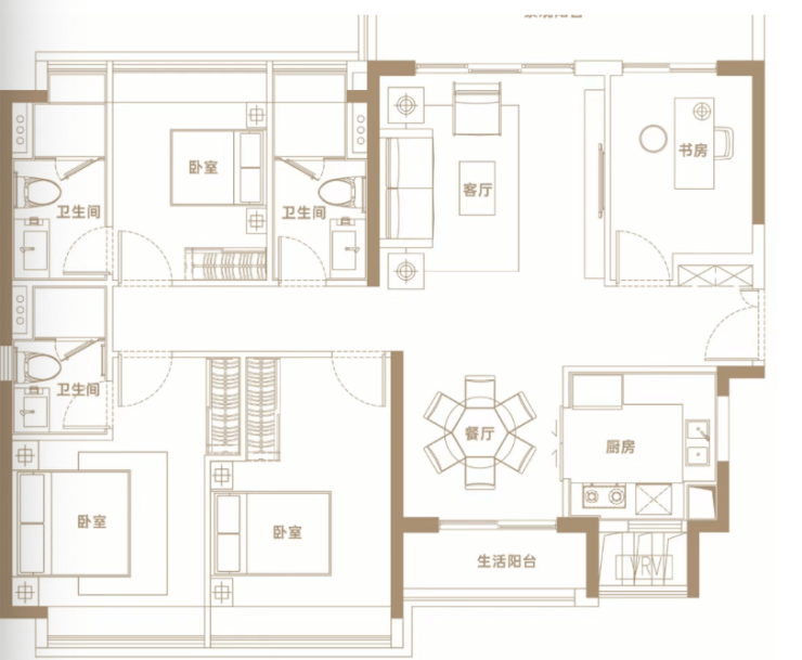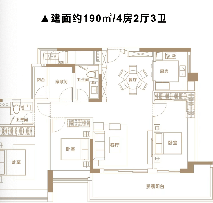 ✅ 190㎡四房三卫: