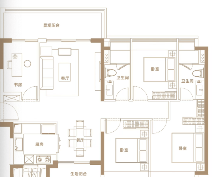 - 约6.5–7米景观阳台 | 双卫+动静分区 | 主卧套房;