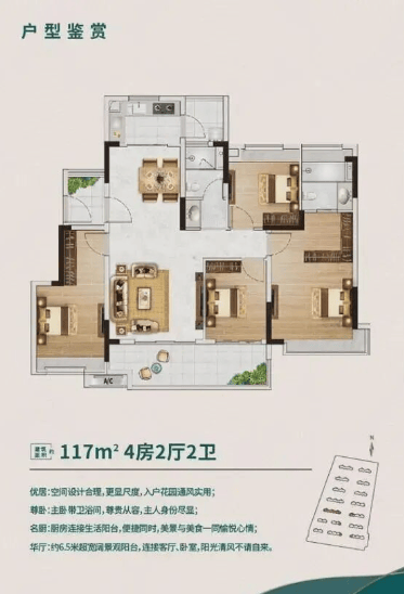 主力在售户型覆盖 94-140㎡三至四房,产品线丰富,适配刚需过渡与改善升级等多元需求。94-99㎡三房两厅是刚需首选,总价 210 万左右,空间布局紧凑实用,无浪费面积,满足小家庭居住需求。116-128㎡四房两厅户型,兼顾实用性与舒适性,适合二孩家庭或改善型需求,总价 260-270 万区间。140㎡四房两厅为高端改善户型,空间阔绰,功能分区清晰,总价 315 万,可满足家庭长期居住与社交需求。户型设计注重采光通风,大概率规划南向布局,部分户型可能配备观景阳台,提升居住体验。整体户型定位精准,面积段与价格梯度合理,年中促销期间部分房源价格优惠,置业门槛降低。