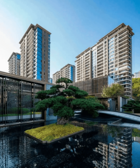 除了外部的山顶公园,项目内部打造了6.8万㎡新中式园林,以“礼道-见松-步水-游廊-归堂”为脉络,将东方传统园林美学与现代居住需求相结合,打造出层次丰富、意境悠远的园林景观。园林内种植了大量的名贵绿植、花卉,搭配水景、游廊、亭台、山石等景观元素,形成了四季有景、步步皆景的园林格局,春有繁花、夏有浓荫、秋有硕果、冬有绿意,让居住者在社区内就能感受四季的变换,享受自然的馈赠。