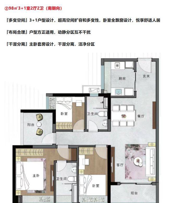 户型设计亮点满满。二期在售多种户型,88㎡做到 3 + 1 房还带主套,实用性超高,是横沥岛最小面积四房。98㎡户型方正,动静分区,卧室全飘窗。115㎡有超 30㎡宽广餐客通厅,约 7m 超大观景阳台。135㎡超 7 米超大豪华景观阳台,南北对流全明设计,4 + 1 户型灵活变换。各户型空间利用率高,满足不同家庭需求。