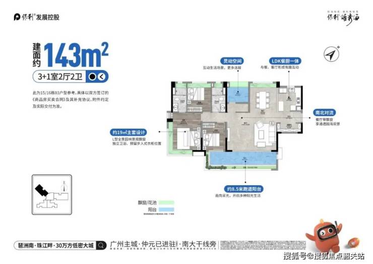 功能亮点:主卧套房带独立卫浴,超大阳台(约6.8米)连接客厅与次卧,通风效率提升30%;