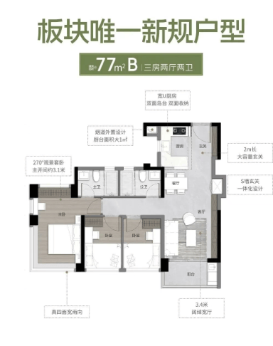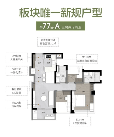 万科·檐屿城内的户型多样,从77平方米至135平方米不等,包括三居室到四居室的设计,面积跨度广泛,能够满足不同家庭的需求。每个户型都经过精心设计,力求最大化利用空间,同时保证室内的采光和通风效果。无论是小家庭还是大家庭,都能在这里找到合适的居住方案。