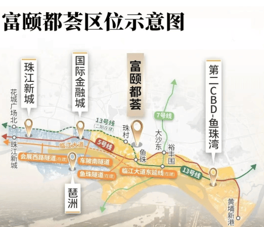 项目距离地铁5号线鱼珠站约2.4公里,13号线二期珠村站约2.7公里,步行不便,需依赖骑行或接驳车通勤。但自驾出行极为便利,周边茅岗路、广园快速、中山大道等主干道环绕,可快速接入市中心路网,前往珠江新城高效便捷。虽非地铁上盖,但依托密集路网与未来区域交通升级,整体通达性仍具竞争力。