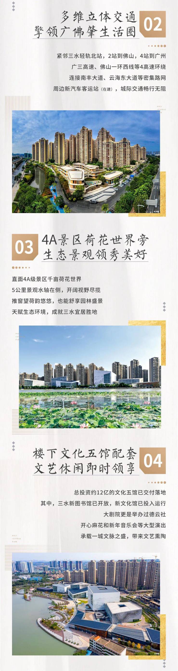保利・中央公园作为三水新城核心百万方央企大盘,凭借央企品牌、成熟配套、实景交付、精工产品等核心优势,打造广佛肇高性价比品质人居,项目价格体系合理亲民,覆盖刚需、改善、高端等不同置业人群需求,成为广佛置业人群的价值优选。