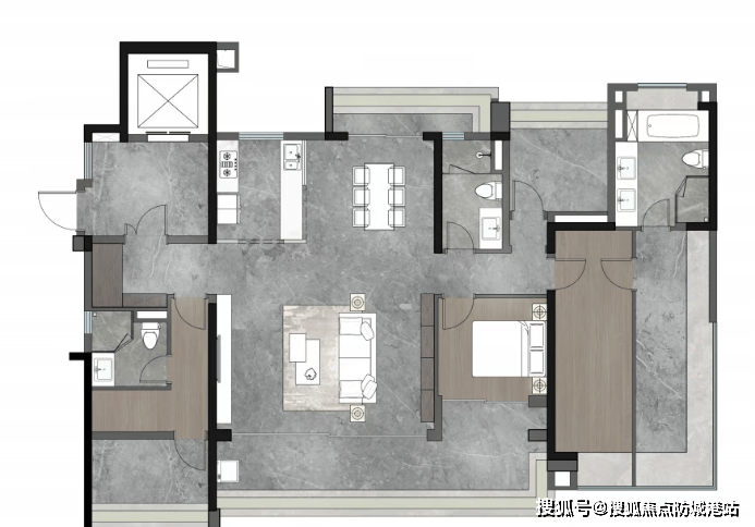 保利臻誉143㎡户型得房率115%,实际使用面积相当于传统住宅170㎡;