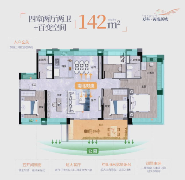 随着家庭人口的增加,很多家庭会考虑换一套更大的房子,而万科黄埔新城的125-142平方米四房户型,正好满足了这类改善进阶型家庭的需求。该户型涵盖125㎡四房双主卧和142㎡四房两种,总价380万起,空间尺度更大,居住舒适度更高,适合多孩家庭或三代同堂。