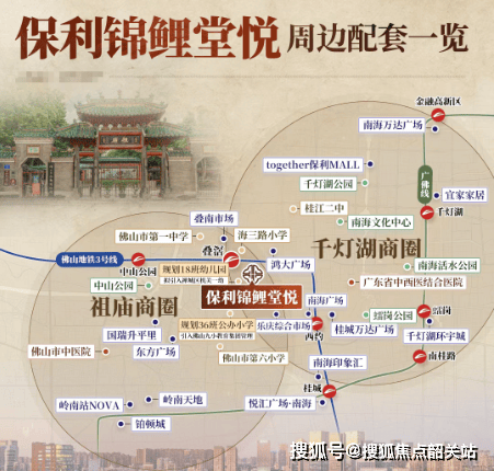 保利锦鲤堂悦位于佛山市禅城区海三路与文华北路交汇处东南侧,占据祖庙与桂城双CBD核心辐射圈: