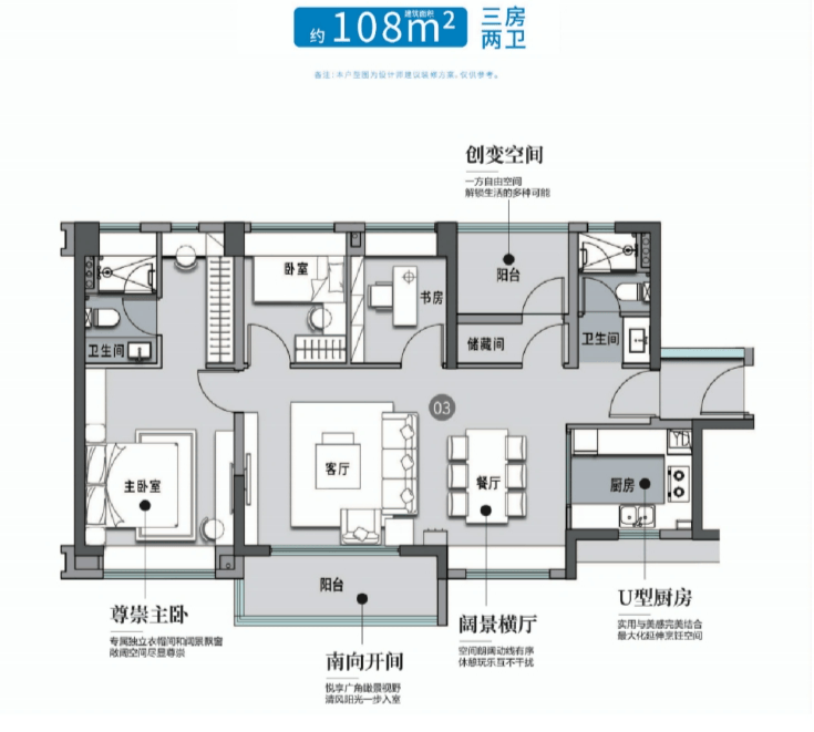 目前主推的是76–108㎡的精装高层洋房,以及103–149㎡的毛坯叠墅。先说洋房:76㎡做到2+1房,带入户花园,横厅设计让公共区域显得更通透;那个标为“储物间+阳台”的百变空间,完全可以改造成儿童房或书房。98㎡是标准竖厅三房,动线清晰,适合刚需家庭。108㎡则升级为3+1房横厅,主卧带独立阳光衣帽间,南北对流,采光通风都不错。