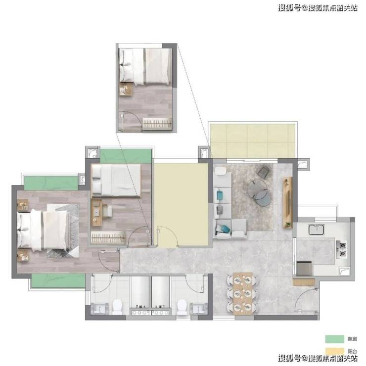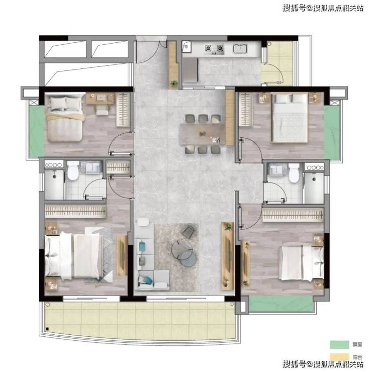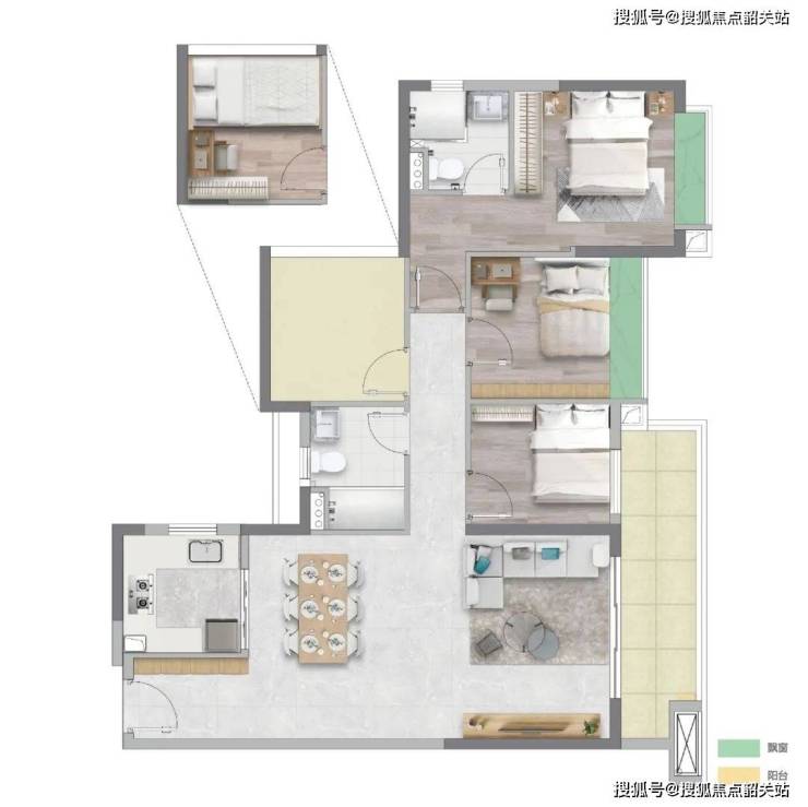 105㎡三房两厅两卫:双阳台设计,主卧套房,LDK一体化空间,总价约225万元起
