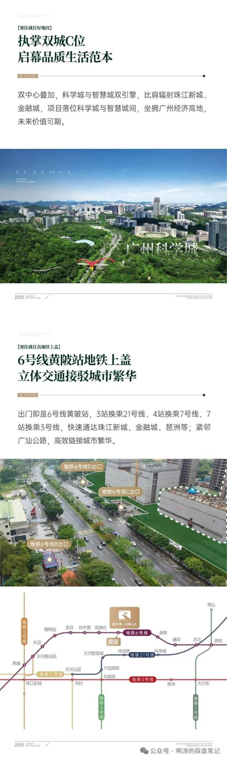 新世界·四季山水坐落于广州市黄埔区科学城核心板块,作为科学城首个地铁上盖南向新规新房,占据板块发展核心红利,地理位置得天独厚。科学城作为粤港澳大湾区科技创新走廊核心节点、黄埔区重点发展区域,聚焦新一代信息技术、生物医药、高端装备制造等战略新兴产业,已集聚大量优质企业与高端人才,区域发展潜力巨大。项目所处板块交通路网完善,商业、教育、医疗、生态等配套逐步成熟,居住氛围日益浓厚,是科学城板块宜居宜业的核心区域。依托科学城的产业优势与政策红利,区域人口导入持续加速,预计未来5年区域常住人口将增长25%以上,住房需求持续攀升,为项目资产增值提供坚实支撑。同时,板块内土地资源稀缺,近3年住宅用地供应年均不足30万平方米,项目作为板块内稀缺的地铁上盖新规住宅,具备极高的居住价值与投资潜力。