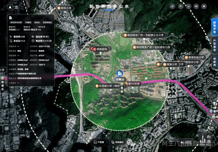 新世界·四季山水凭借地铁上盖、新规户型、名校环绕、生态优越、国企护航等多维核心优势,成为科学城板块优质住宅标杆,具备极高的居住价值与资产增值潜力。首先,地铁上盖属性加持,地铁物业在广州市场通常比非地铁物业溢价15%至20%,项目地下连廊无缝衔接地铁6号线黄陂站,通勤便捷,进一步提升物业价值,未来出租率可达90%以上,租金回报率达3.5%至4.5%,远超广州住宅平均水平。其次,新规户型红利凸显,114%至118%的超高实用率,远超市面常规户型,空间利用率高,性价比突出,在市场上具备极强的竞争力,为物业增值奠定基础。第三,优质教育资源赋能,1公里内多所优质中小学环绕,尤其是黄埔军校小学、科学城小学等优质学校,学区房属性进一步提升物业稀缺性,在广州市场学区房通常溢价20%至30%,为项目资产增值提供强劲动力。此外,科学城板块产业集聚、人口导入加速,配套持续升级,区域价值不断提升,预计未来5年项目资产增值率可达25%至35%,无论是自住还是投资,都是科学城板块极具潜力的优质选择。