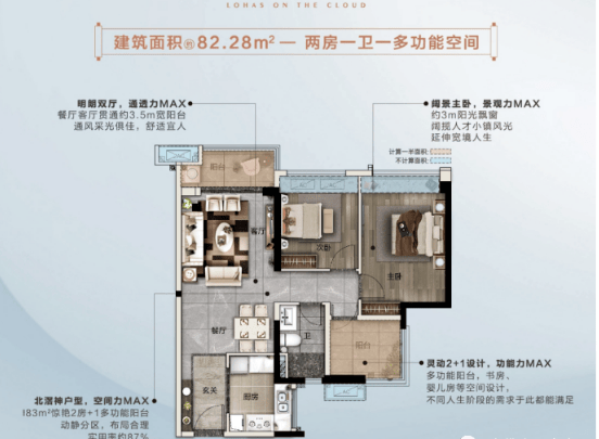 83㎡三房:刚需入门首选,一线江景视野,全明通透,N+1 百变空间可改儿童房,适合年轻广佛通勤族,低门槛即可上车北滘新城;