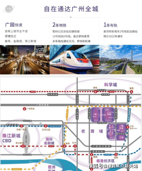《富力新城》地处黄埔临港经济区与科学城板块的核心交汇处,位于黄埔大道与广园快速之间的黄金发展线,地理位置优越,既能承接临港经济区的政策红利,又能享受科学城板块的产业与配套辐射,发展潜力十足。交通配套便捷多元:公共交通方面,笔村公交站可无缝对接地铁 13 号线和 6 号线,未来有轨电车 2 号线宏远路站开通后,将进一步提升轨道交通便利性,实现多种出行方式无缝切换。自驾出行更是优势显著,项目紧邻黄埔大道与广园快速路,自驾约 30 分钟可达珠江新城、20 分钟直达金融城、10 分钟抵达鱼珠 CBD,轻松融入广州主城区半小时生活圈,无论是通勤还是日常出行,都能高效便捷。