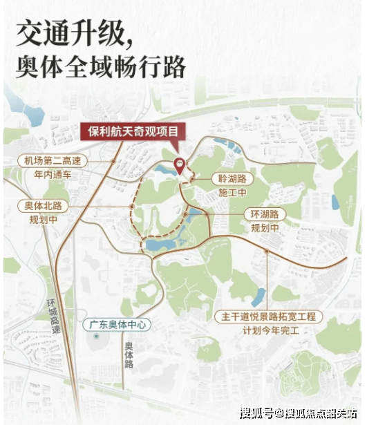 依托广州十五届全运会契机,政府总投资680亿元,实施80个道路项目建设,打通“六横七纵”交通主动脉,奥体板块路网全面升级,保利辰园湖境将直接享受交通升级红利,未来出行更加便捷。