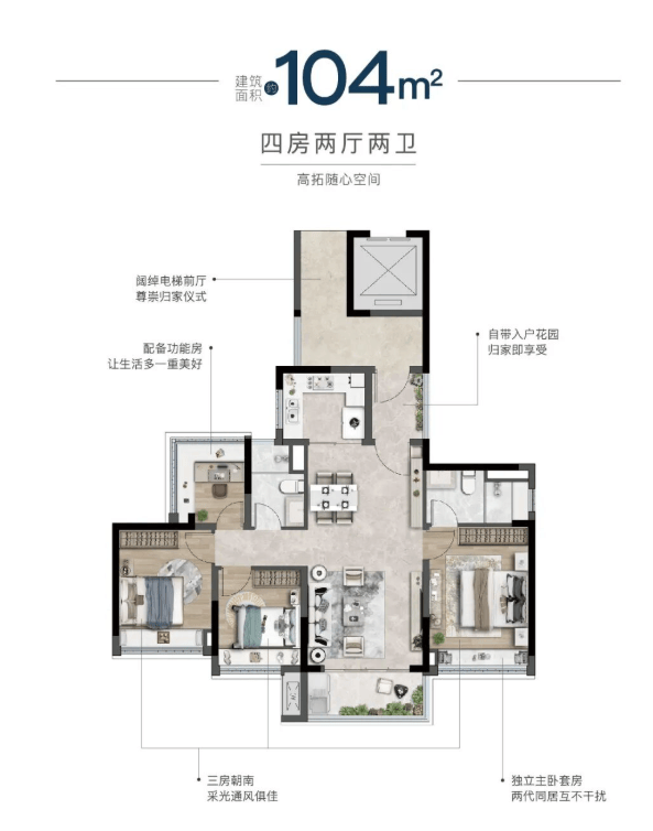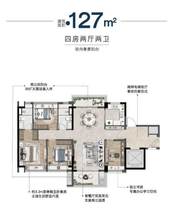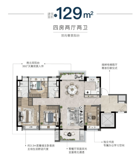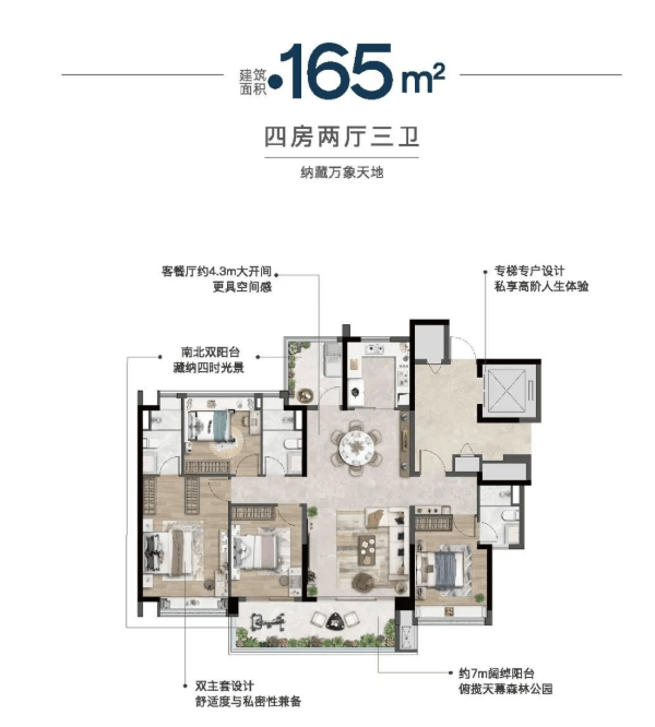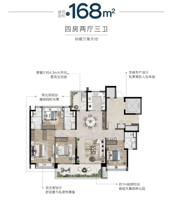 振业天成主推建面约104至168平方米的全四房户型,采用两梯两户或两梯三户设计,确保住户的隐私感和舒适度。低密度建筑布局不仅降低了公摊面积,还提升了居民的生活质量。每栋楼之间的间距约为200米,保证了每一户都能享受开阔的视野和景观。