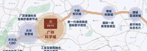 振业天成所处的区域是广州市重点发展的科技创新走廊的重要组成部分,汇聚了金融总部、人工智能、数字经济、智能制造等多个新兴产业。预计未来产业布局成熟后,该区域将承载超过1万亿元的GDP,成为广州经济的新引擎。此外,天河智慧城定位为“广州硅谷”,已吸引了包括网易总部、酷狗在内的2500家企业入驻,而广州科学城则致力于打造万亿级产业集群,引领科技创新发展。