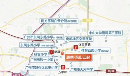 越秀東山云起地理位置优越,距离地铁1号线和5号线交汇的杨箕站仅700米,步行即可轻松抵达。此外,距离五羊邨站和体育西路站也都在800米左右,通过这些站点可以便捷地到达广州的各个主要区域。自驾出行同样方便,周边主干道环绕,如东风东路、中山一路等,为居民提供了高效的通勤选择。