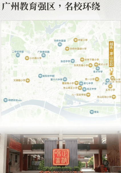 项目对口杨箕小学(铁一教育集团成员),这是一所老牌省一级小学,纳入铁一集团后共享教研资源,升学路径有望进一步向铁一中学倾斜。初中阶段则有机会进入广东省实验中学、铁一中学等名校就读,确保孩子接受优质教育。