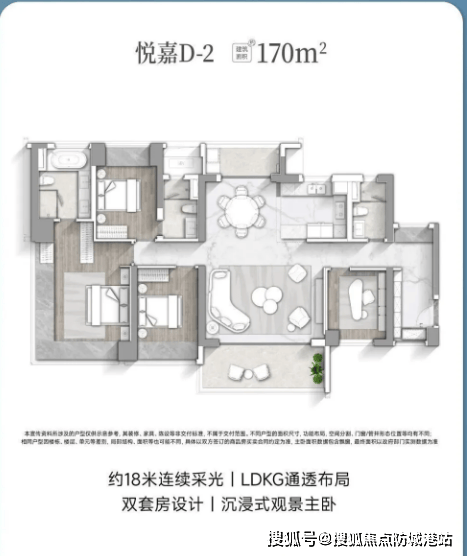 约170㎡悦嘉D-2户型,全明通透设计,南北通透对流,四开间朝南,纵向空间舒适开阔;主卧套房面积约28㎡,拥有无界视野,可沉浸式观景,搭配独立卫生间与衣帽间,彰显尊贵身份;采用半开放式中西厨设计,LDKG一体化布局,烹饪、用餐、休闲无缝衔接,从容有序;配备X空间,可灵活改造,随家庭成长一同变化,适配不同家庭需求。