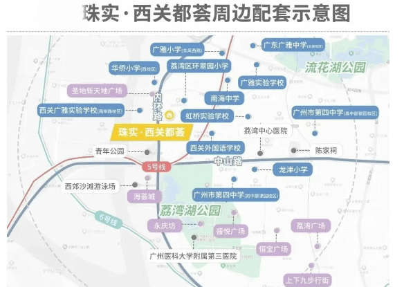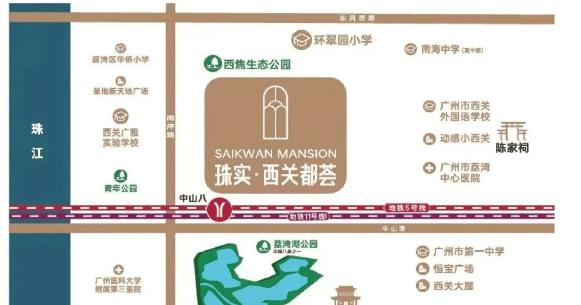 珠实·西关都荟的交通优势堪称“立体化高效通勤”。项目距离地铁5号线中山八站直线仅约500米,步行10分钟内可达。5号线贯穿天河、越秀、荔湾三大核心区,直达珠江新城、金融城等CBD,通勤效率极高。更值得期待的是,2024年底即将全线通车的11号线(环线)将在附近设站,未来可一线直达广州火车站、广州东站、琶洲、白鹅潭、广船等城市战略节点,形成“双地铁+环线”黄金组合。此外,项目周边汇聚34条公交线路,覆盖全城主要区域。自驾方面,通过南岸路与中山八路交汇口,可快速接入中山路、东风路、环市路等城市主干道,30分钟内畅达珠江新城、琶洲、白云新城等核心板块。对于注重通勤效率的都市家庭而言,这里无疑是“时间成本最优解”。