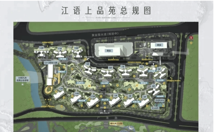 江语上品苑紧邻珠江,拥有约1000米阔绰江岸线,800米巨幕江面,户户270°南向环幕望江。小区园林总面积约6万㎡,约14个足球场大小,布局六大主题景观,包括叩山见瀑、无边际泳池、儿童主题乐园、宅间花园、伴山会所及休闲泛会所,为全龄段居民提供交流、运动、休闲及社交场所。江景资源与高品质园林结合,使住宅兼具视觉享受与生活舒适度,是城市难得的亲江豪宅。