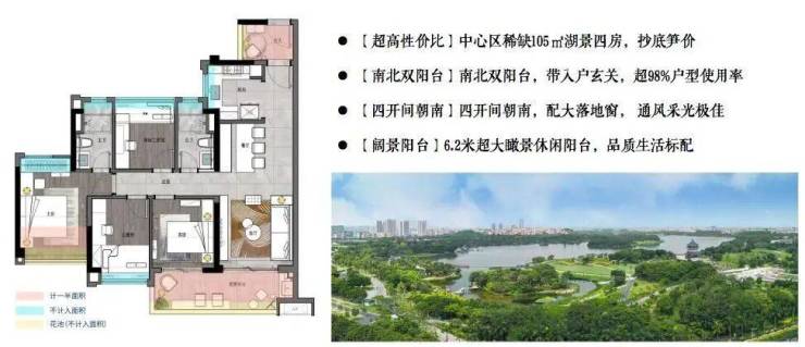 A:项目所有户型得房率超82%,部分户型赠送入户花园及飘窗面积。例如,78㎡三房两卫户型得房率达85%,105㎡四房两卫户型得房率达88%,空间利用率极高。