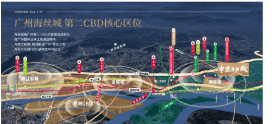 中建海丝城坐落于广州海丝城核心板块,地处临港经济片区,是广州市沿江东进发展战略的重要节点,同时属于黄埔“三城一岛”战略核心区域,与珠江新城、琶洲形成“黄金三角”,具备不可替代的战略性中间区位价值。