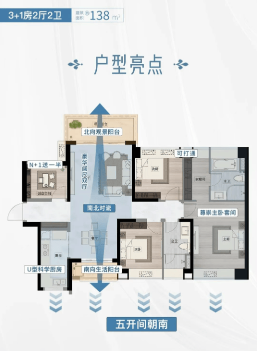 高品质住宅设计:项目采用宽楼间距、三梯四户的设计,确保了每户的私密性和视野开阔度,同时结合周边自然景观,打造出舒适的居住体验。