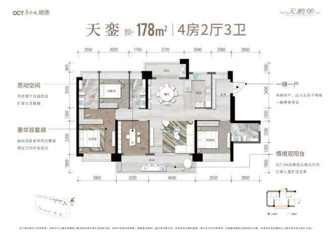 178㎡户型:作为大户型,尽显奢阔风范。专梯到户给予业主私密专属的归家体验。套房主卧不仅空间宽敞,还可能采用豪华装修与配置,营造出五星级酒店般的居住感受。多个房间可灵活规划,如设置专门的书房、健身房、茶室等,满足业主多样化的生活需求。超大的南向景观视野,将园林美景与城市风光尽收眼底。此户型适合对生活品质有极高追求,注重居住空间和舒适度的高端购房者。