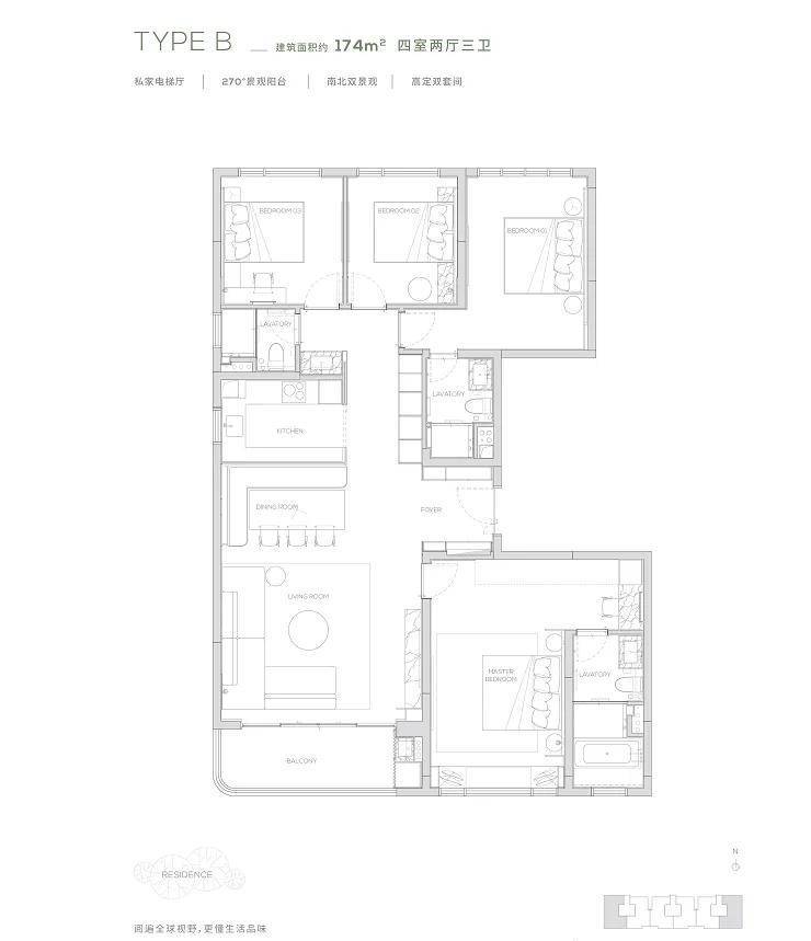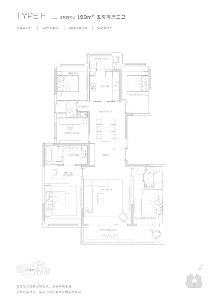 建筑与户型:145-315㎡南向环幕大平层,低密尺度+半山美学天花板
