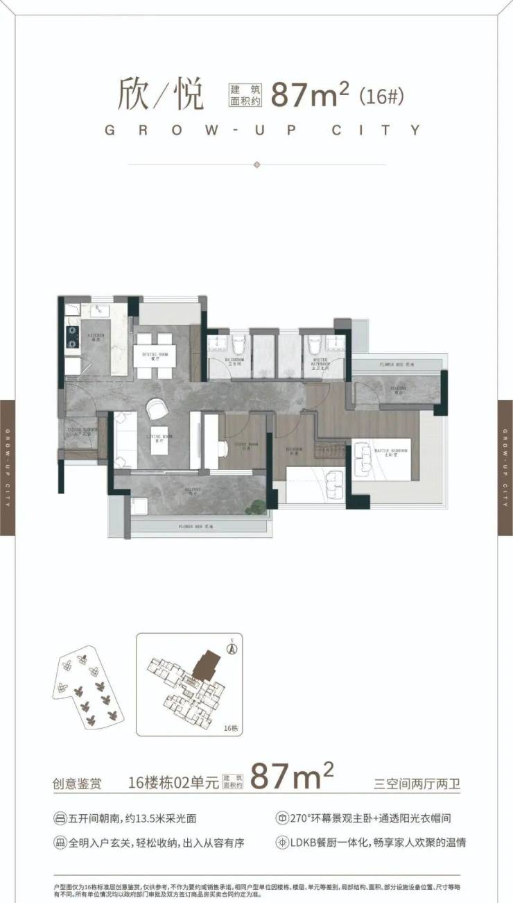 本宣传资料仅为项目信息公示用途,不构成《商品房买卖合同》的要约或承诺。宣传内容中涉及的项目规划、周边配套、政府规划、商业资源、教育资源、交通配套、户型面积等相关信息,最终均以政府相关部门审批文件及项目实际交付情况为准;