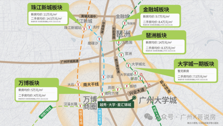 自驾出行:兴业大道/南大干线,番禺东西向发展大动脉,串联万博CBD/广州南站等板块;南沙港快速、新化快速、番禺大道:无缝衔金珠琶,另经金光东隧道,可速达大学城一期。