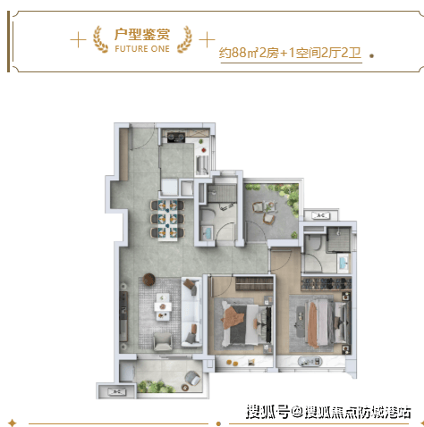 亮点:横厅设计,约5.2米大阳台采光面,超6米阔景阳台,动静分区明确,私密主卧套房,得房率87%,空间利用率比市场同类产品高12%。